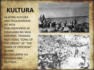 PANITIKAN SA PANAHON NG HAPON Pagbabago PAGSAKOP URI NG PANITIKAN PAGBABAGO EPEKTO NG MGA ITO Ika-8 Disyembre 1941 - Pagsabog ng Pearl Harbor sa Hawaiiat ng Clark Air Base sa Pampanga Pagsakop sa Maynila Ika-3 Enero 1942 -. Paglaan ng patakaran at gabay para sa school Sinaunang Pilipino Ang malawak na kaalaman ng mga unang Pilipino ay hango sa edukasyong di-pormal ang kabihasnan ay unti-unting nawaglit sa alaalaat nawala sa. Ang ating panitikan sa panahon ng mga mananakop na amerikano.