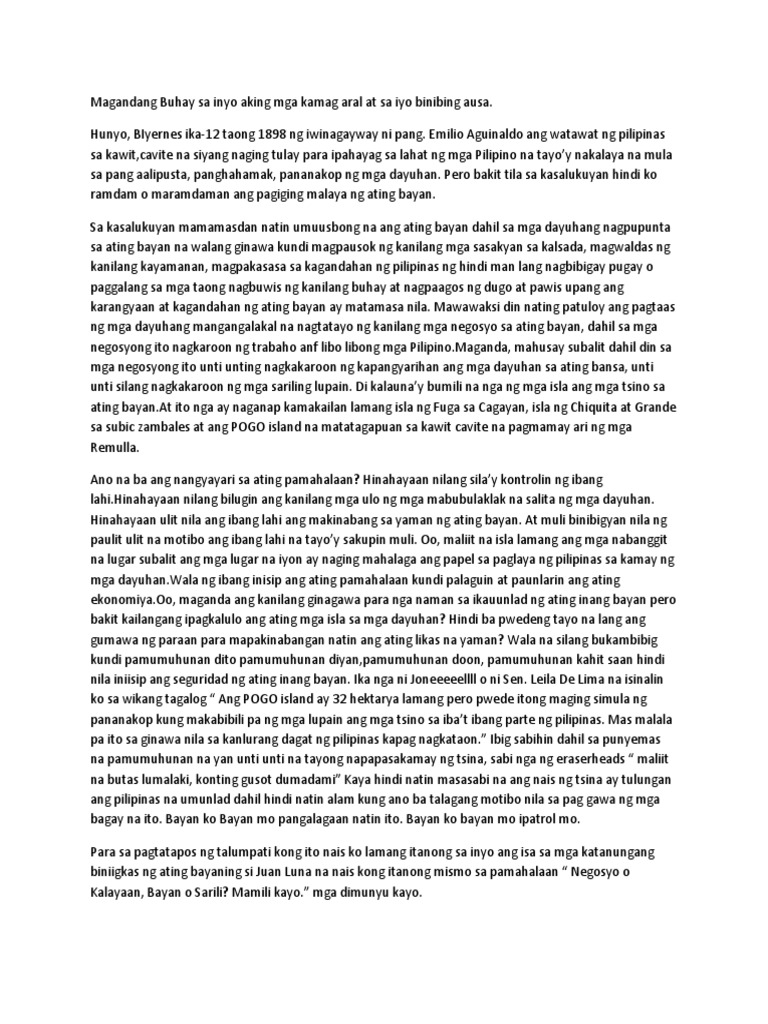 Talumpati sa Araw ng Kalayaan. Sa pagkakadiskubre ng bansang ito nilayon ni Magellan na maipalaganap. B awat bansa sa mundo ay mayroong batas at panukala para sa kapayapaan.